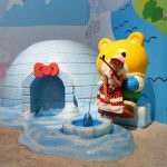 Di wahana Hello Kitty ini terdapat banyak boneka Hello Kitty dengan bermacam profesi serta membuat kita serasa pergi ke masa depan karena bentuk pintunya yang futuristik. Ternyata hal ini karena di dalam cinema-nya memang diputar film Hello Kitty yang mengisahkan Hello Kittynya berkeliling dunia dengan mesin waktu miliknya. Lumayan sih, kita bisa mengenalkan banyak budaya dunia kepada anak dengan cara yang menyenangkan di sana. It’s an educational ride for children 😉 Naia sih seneng-seneng aja karena bisa nonton Hello Kitty di layar besuaar. hahaha.
