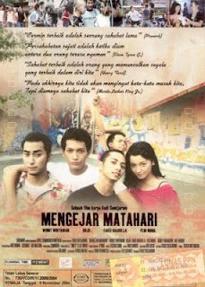 Suatu hari, Naia lagi iseng nyari-nyari buku buat dibaca dari lemari bukunya ~yap, saya memberi satu ruang di lemari buku yang saya punya khusus untuk buku2nya Naia, hihi~. Eh, bukannya ngambil buku, dia malah nemu sesuatu. Saya tau dia gak ngambil buku karena tiba-tiba dia mengangkat satu tangannya dan bilang “ama” *maksudnya “sama”*. Saya bertanya, “Apa yang sama?” dia lalu menunjuk ke salah satu cover VCD lalu mengangkat tangannya lagi. Ternyata dia sedang menirukan gayanya Ujo yang ada di cover film Mengejar Matahari bagian belakang, hahaha.