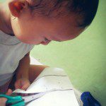 Bisa menggunting mengikuti garis lurus. Awal-awal Naia belajar gunting sudah dari beberapa bulan yang lalu. Saat itu dia memang tertarik sama gunting, dan berhubung saya juga punya gunting kecil yasudah saya bolehkan saja lah. Pastinya dalam pengawasan lho yaa. Bahaya euy, gunting gitu tanpa pengawasan, hehe. Di awal dia bisa menggunting ini, dia menggunting sisi pinggir2nya saja, itu juga pendek, satu kali jepit saja. Tapi, lama kelamaan, minggu kemarin dia bisa menggunting kertas A4 di bagian tengah secara horizontal. Wah, saya lalu kepikiran ide untuk membuat garis di sepanjang kertas itu untuk digunting olehnya. Ternyataaah, dia bisa menggunting mengikuti garis tersebut. Wah, Alhamdulillah yah, baru 2y4m sudah bisa menggunting, hihihi. Iyah, baru garis lurus saja yang dia bisa, kalau melengkung atau melingkar masih belum bisa. Ayo nak terus belajar, semangat!