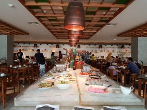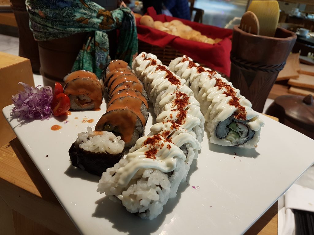 aku baru tahu loh mba ada hotel yang nyediain sushi waktu sarapan, enak banget. Biasanya kan standart nasi goreng atau bubur ayam, duh jadi pengen staycation juga