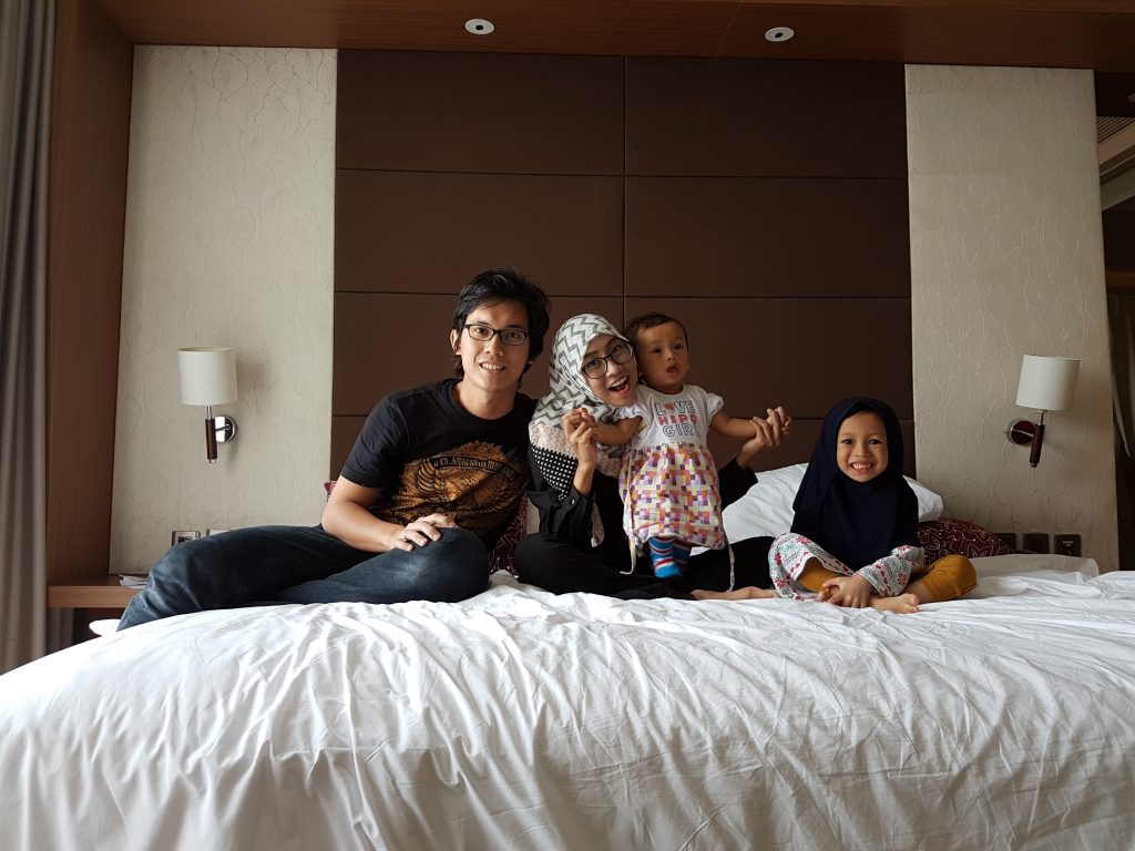 Ya saya seneng lah diajakin gitu ya kan, hehehe. Walau gak terlalu jauh dari rumah, tetep aja seneng, karena bisa ngerasain tidur di tempat yang berbeda plus sarapan gak perlu bikin, jadi saya bisa nyantaaii pagi-pagi. Walau tiap hari mah nyantai juga sih sebenernya, jarang bikin sarapan, yang ada ngangetin makanan kemarin atau beli, wekekekek. Tapi ya rejeki banget kan bisa berkesempatan nginep di hotel bintang 4 gitu đ