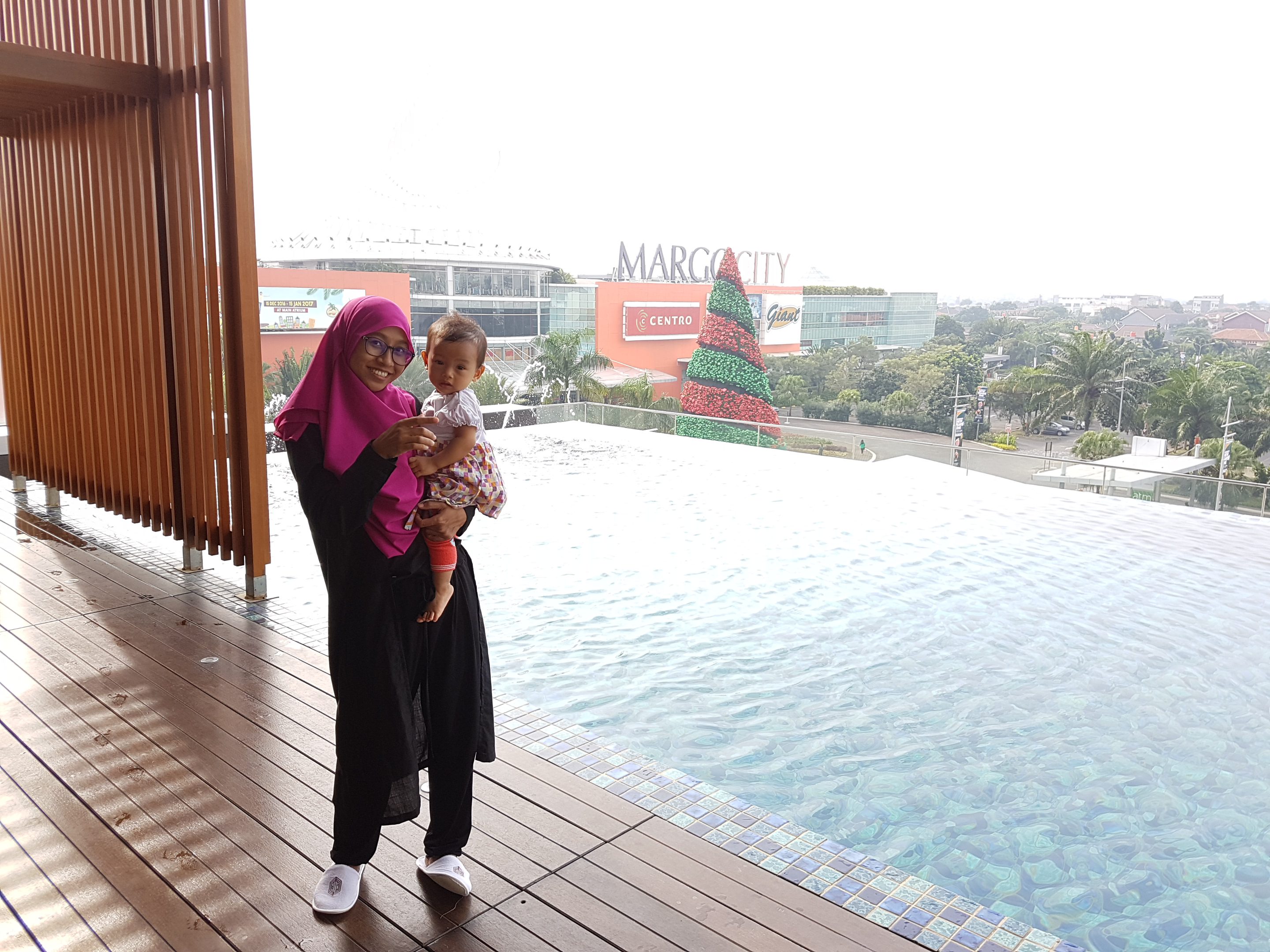 Nah, berhubung saya dan suami tapinya udah ngarep suasana liburan gitu, akhirnya coba-coba cari alternatif deh. Yang bisa gak pake berhari-hari tapi tetep dapet suasana liburannya gitu. Yang penting ya bisa santai dan ngerasain suasana yang beda lah ya sama rutinitas harian. Kebetulan banget di Depok baru ada hotel bintang 4, The Margo Hotel namanya. Akhirnya begitu Nawa sembuh, dan saya udah bosen banget di rumah, suami ngajakin buat staycation aja sekalian ngerasain hotel yang baru itu.