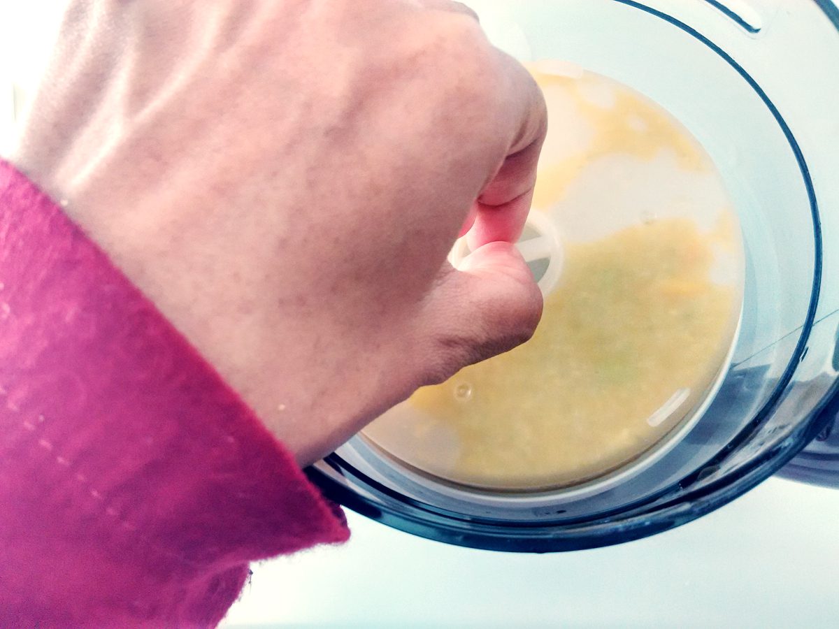 2. Menghancurkan. Selesai mengukus, baru deh MPASInya diblender supaya halus. Berhubung sekarang Nawa udah 10 bulan, jadi udah gak yang halus-halus banget makanannya. Jadi sekarang mah ngeblendernya sebentar banget. Oiya, langkahnya jangan dibalik ya, harus mengukus dulu baru blender!