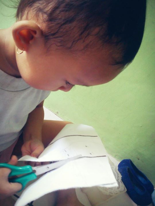 - Bisa menggunting mengikuti garis lurus. Awal-awal Naia belajar gunting sudah dari beberapa bulan yang lalu. Saat itu dia memang tertarik sama gunting, dan berhubung saya juga punya gunting kecil yasudah saya bolehkan saja lah. Pastinya dalam pengawasan lho yaa. Bahaya euy, gunting gitu tanpa pengawasan, hehe. Di awal dia bisa menggunting ini, dia menggunting sisi pinggir2nya saja, itu juga pendek, satu kali jepit saja. Tapi, lama kelamaan, minggu kemarin dia bisa menggunting kertas A4 di bagian tengah secara horizontal. Wah, saya lalu kepikiran ide untuk membuat garis di sepanjang kertas itu untuk digunting olehnya. Ternyataaah, dia bisa menggunting mengikuti garis tersebut. Wah, Alhamdulillah yah, baru 2y4m sudah bisa menggunting, hihihi. Iyah, baru garis lurus saja yang dia bisa, kalau melengkung atau melingkar masih belum bisa. Ayo nak terus belajar, semangat!