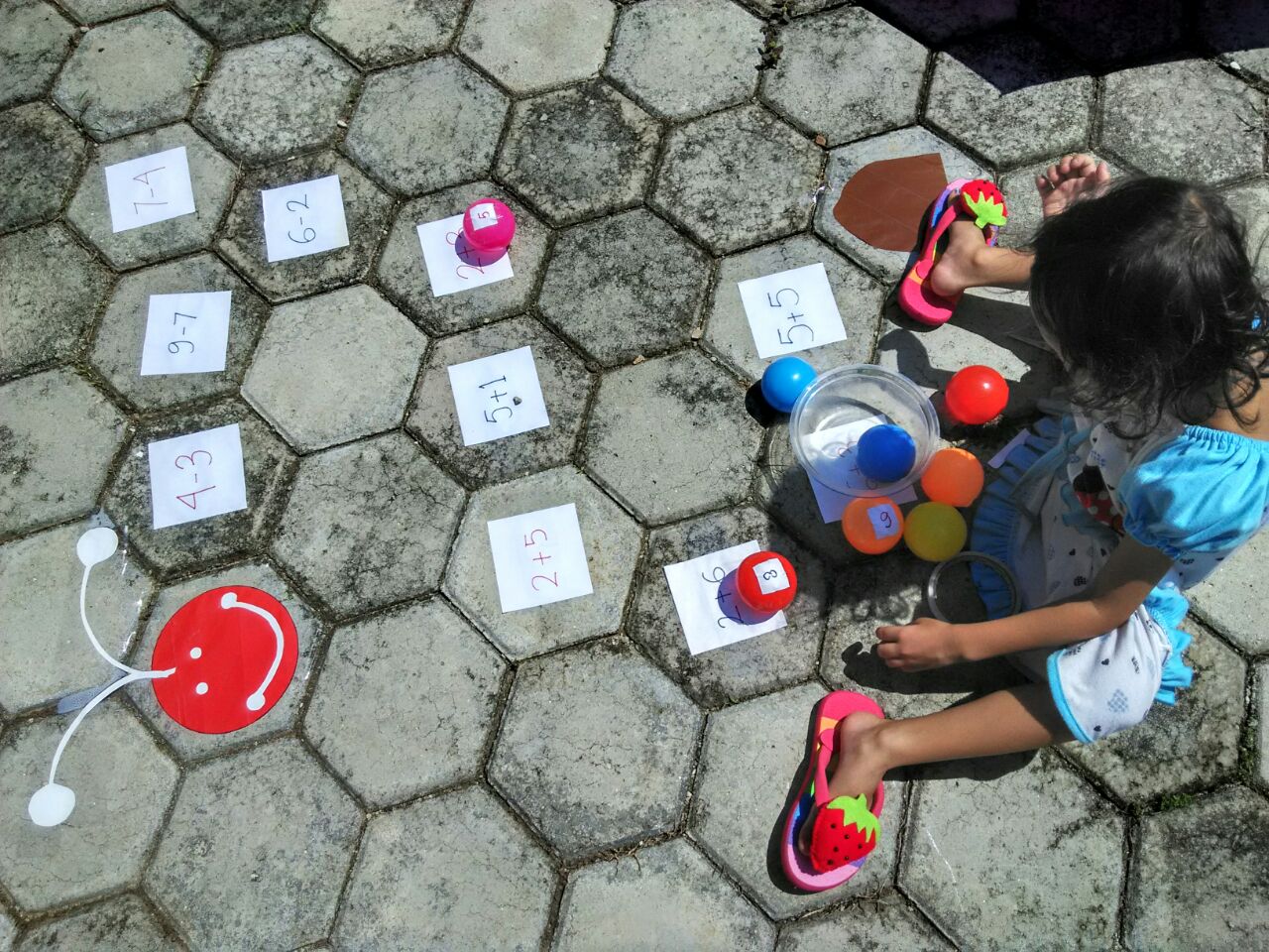- Ajak anak untuk menempelkan bola di operasi matematika yang sesuai