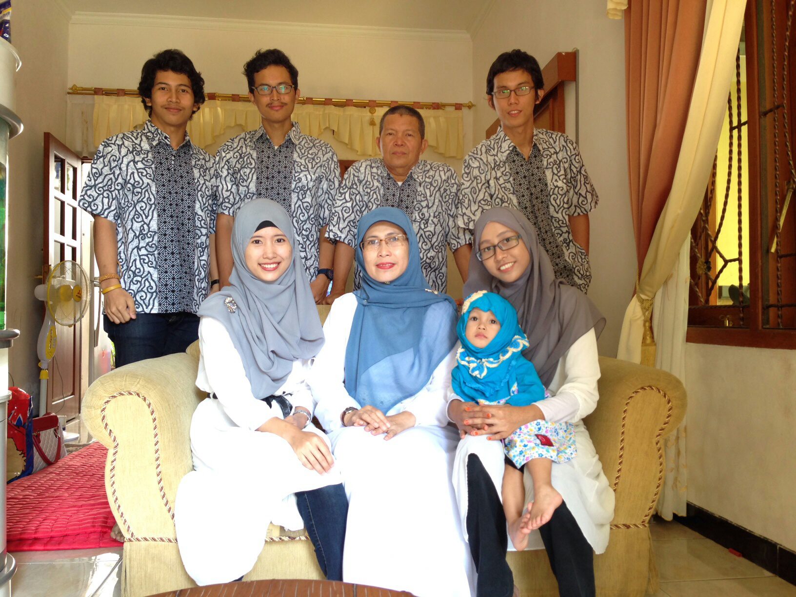 Sebelum nikah, saya ngeliat foto-foto lebaran suami yang dulu-dulu. Mertua seneng banget jait baju seragaman saat lebaran. Sempet kepengen juga sih gitu buat jait baju seragaman gitu, dan mikir mama mertua cukup mentingin baju seragaman saat lebaran. Sempet mikir juga kalau mama mertua orang yang bakal belanja bahan dari sebelum lebaran untuk dijaitkan jadi baju lebaran. Tapi gak taunya, begitu saya nikah, mama malah bingung mau pakai apa di saat lebaran. Pernah juga di hari pertama puasa, pulang-pulang bawa baju-baju seragaman buat kita-kita lebaran, hahaha. Gak taunya ya kalau ada baju yang samaan dan masih bagus dan bisa dipakai, yaudah pakai itu aja. Bener sih, tetap seragaman saat lebaran, tapi gak mesti baju baru. Pernah baju tahun lalu juga dipakai untuk tahun ini. Gitu-gitu lah.