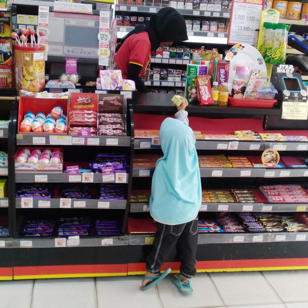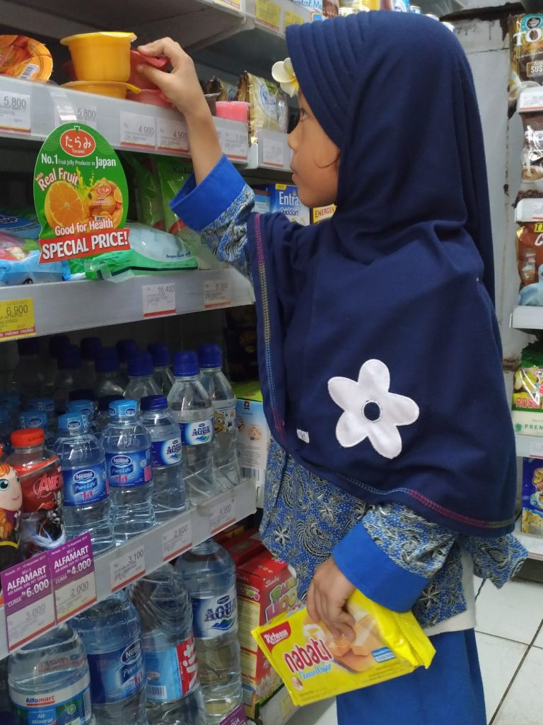 Kalau ini bisa sebelum pergi ke Alfamart atau saat di sana ya. Sebelum pergi kita bisa bilang sama anak kalau mau ke Alfamart dengan tujuan apa. Apa mau belanja kebutuhan dapur semacam telur, minyak dan sebagainya, atau sekedar jajan aja. Kalau sekedar jajan aja, anak juga boleh pilih jajan atau enggak. Kalau boleh, berapa jenis yang diijinkan.