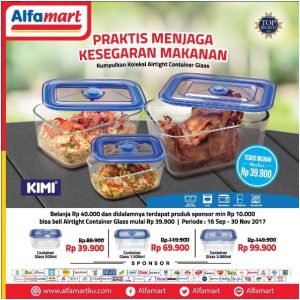 Pada tau gak nih yang bikin saya agak lama belanja itu? Karena saya kemarin memanfaatkan promo yang sedang berlangsung euy. Soalnya lagi ada promo tebus murah Disney Tsum-tsum dan KIMI airtight container glass di Alfamart. Jadi, kita bisa beli 2 benda itu dengan diskon sampai dengan 50% dengan belanja minimal 40.000 yang mengandung produk sponsor sejumlah 10.000 loh. Harga setelah diskon itu mulai dari 39.900 sampai 99.900, yang harga sebelum promo bisa 2x lipatnya. Untung deh kita. Emak-emak nih paling demen deh kalo ada diskonan atau promo-promo gitu ya kan. Saat begini aja baru ngaku emak-emak, tapi dipanggil ibu suka cemberut, wekekek.