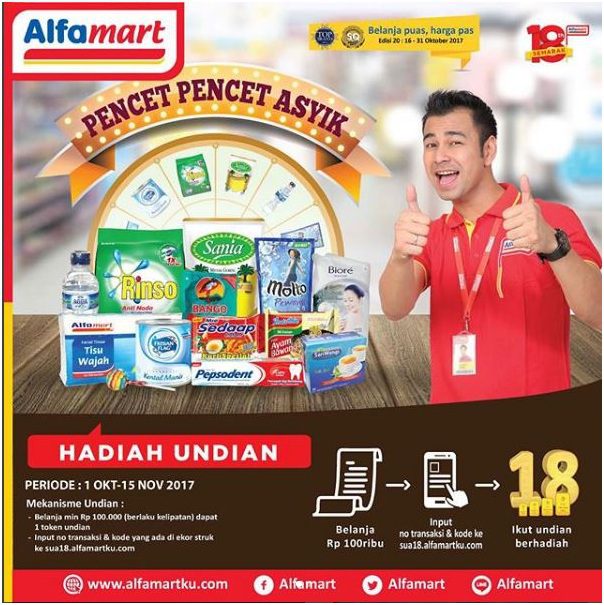 Oiya, ada satu lagi promonya nih. Tiap belanja 100.000, kita bisa ikut program SUA 18 tahun Alfamart pencet-pencet asyik dengan cara memasukan nomer transaksi dan kode yang ada di ekor struk, untuk mendapatkan nomer undian. Jangan lupa daftar dulu tapi ya pakai email di sua18.alfamartku.com. Hadiahnya doonk, ada emas mulai dari 2g sampai 25g. Lumayan banget banget ini mah buat kita, ya gak? ?