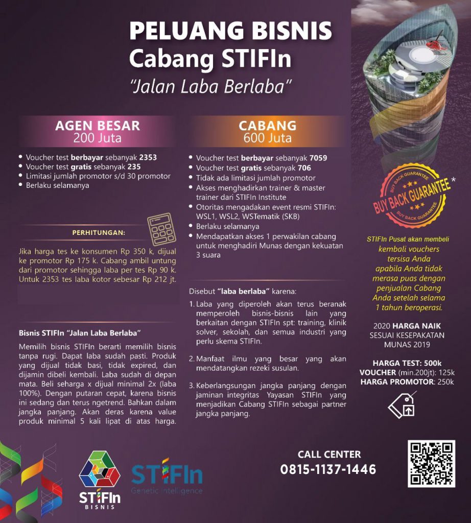 Nah, kalau bisnis lainnya lagi yang bisa mendapat keuntungan lebih banyak lagi yaitu dengan membuat cabang STIFIn di daerah tempat tinggal kita. Memang ini butuh modal yang lebih banyak, tapi juga akan mendapat keuntungan yang lebih banyak pula 🙂
