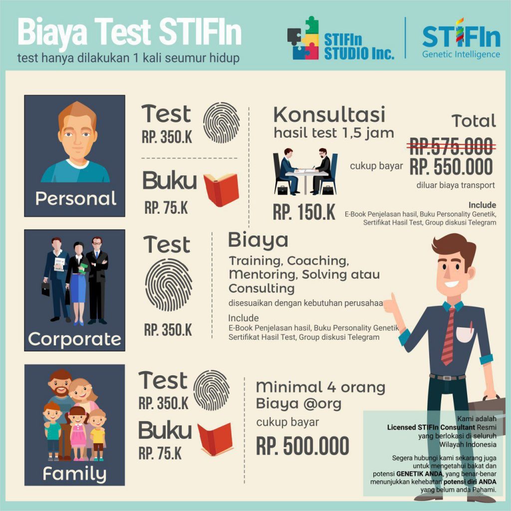 Harga untuk tes STIFIn ini cukup lumayan lho, 1x tes bisa mencapai 550ribu untuk perorangan. Ini sudah mencakup biaya tes, buku penjelasan, juga konsultasi. Buat saya, konsultasi langkah yang cukup penting sih. Agar kita tidak mentah-mentah menerima hasil tes tanpa ada tindakan lanjutnya. Tentu kita tes STIFIn untuk lebih mengoptimalkan diri kita kaan. Nah, kalau tidak tau apa langkah selanjutnya agar potensi kita lebih maksimal, ya jadi hanya sekedar tau saja kan? 😀