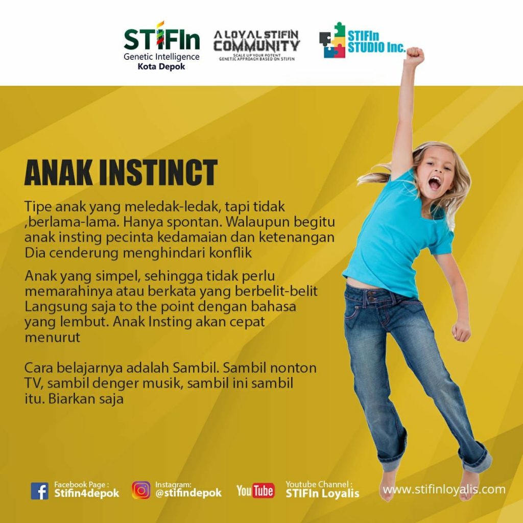 Dengan misalnya nih ya tau anak kita tipenya apa, apakah sensing, thinking, intuiting, feeling, atau insting, kita jadi bisa belajar tindakan atau hal yang harus dipelajari untuk menghadapi bermacam-macam tipe ini.