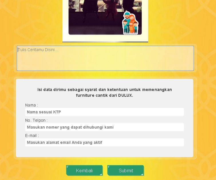 Mau ikutan kontes fotonya jugaa? Yuk, buka deh warnawarnikemenangan.com. Di situ langsung ada form untuk mengupload foto dan memilih frame yang kita mau. Setelah menekan tombol next, baru deh jelaskan cerita di balik ekspresi kemenangan yang kita pilih itu. Setelah selesai mengisi data, tekan submit deh, that’s it! Kita juga bisa liat foto yang udah disubmit di gallery untuk memastikan kita sudah terdaftar. Gampang kan? 😉