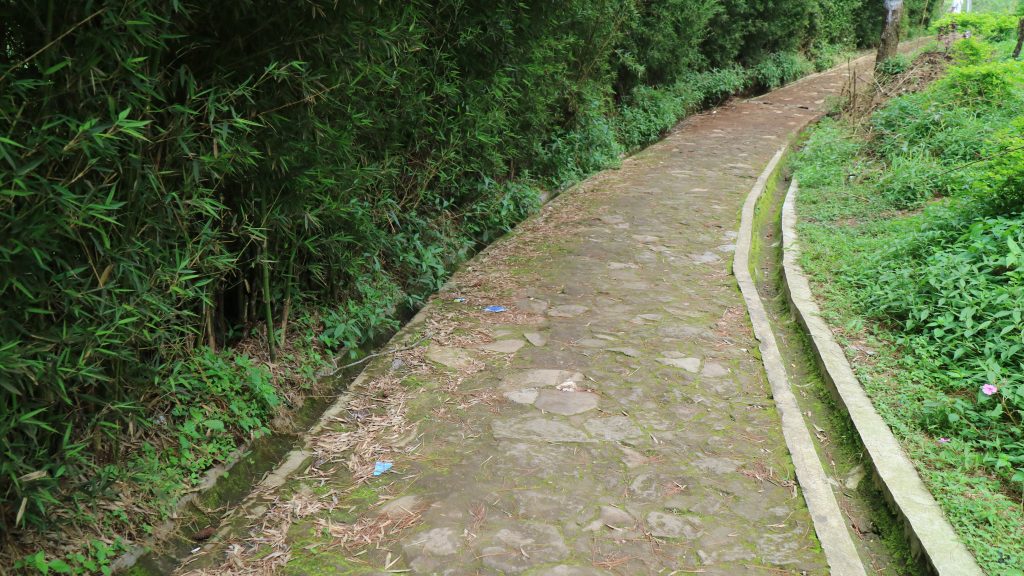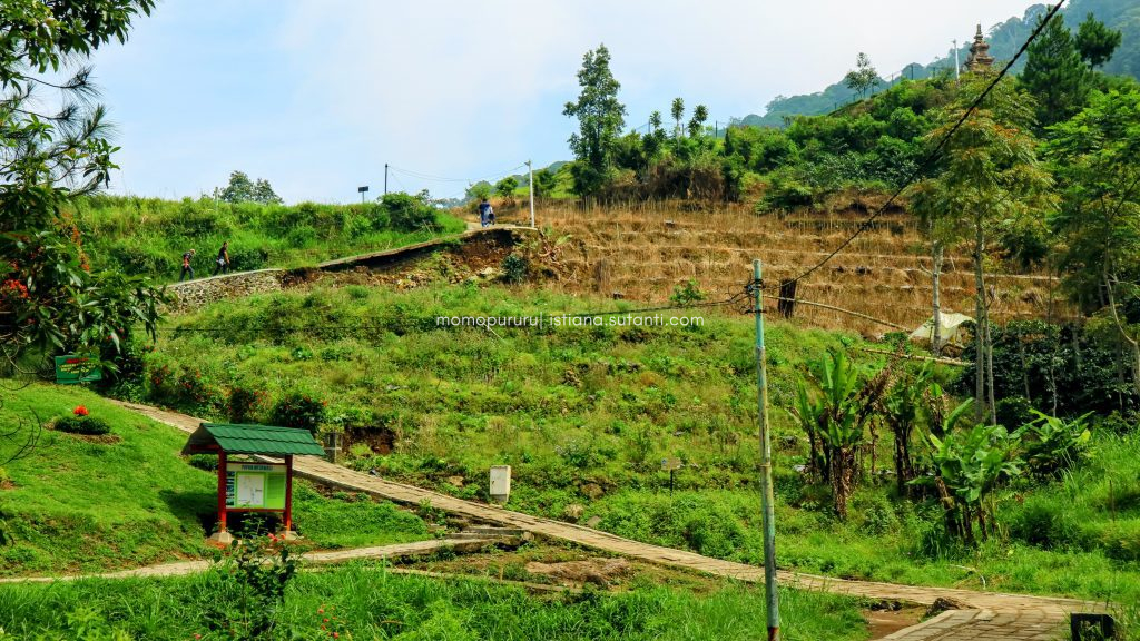 Selain banyak penjual makanan dan minuman, pemandangan alamnya juga ciamik banget. Sepanjang perjalanan menanjak itu, kita disuguhi oleh pemandangan gunung Ungaran dan lembah yang menghamparkan pemandangan hijau rumput dan pepohonan rindang. Pokoknya gak berasa deh lelahnya menanjak. Berasa juga sih, tapi karena pemandangannya indah, lelahnya jadi terbayarkan banget sepanjang perjalanan. Catet ya, sepanjang perjalanan! Karena tracknya emang agak terbuka jadi kita bisa dengan jelas melihat pemandangan kiri dan kanan. Terlebih lagi, jalanannya juga bagus. Walau menanjak dan menurun, jalanannya gak licin dan gak membuat terpeleset, karena jalanannya terdiri dari batu-batu kasar yang disusun menjadi jalan yang lumayan halus. Jadi gak bikin kaki sakit karena terlalu kasar, tapi gak bikin kepeleset juga karena masih cukup kasar 😀