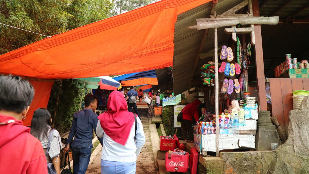 Perjalanan dari Gedong I sampai Gedong II ini, kita akan melewati banyak penjual makanan dan minuman di pinggir-pinggir jalan, jadi pendakiannya gak terasa jauh, karena ya berasa ramai terus. Beda dengan melakukan hiking di gunung Gede beberapa waktu lalu yang pemandangannya hanya hutan.