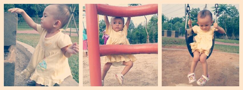 Nah, pas tahun 2012 nih (mungkin tahun sebelumnya kali yak, saya aja yang baru tau di tahun itu, wehehe), pas banget tahun kelahiran Naia lah, mulai deh bermunculan taman deket rumah gitu. Gimana gak seneng kaan. Bisa sering-sering ngajak Naia main ke taman deh kalo gitu, gak di rumah melulu 😀