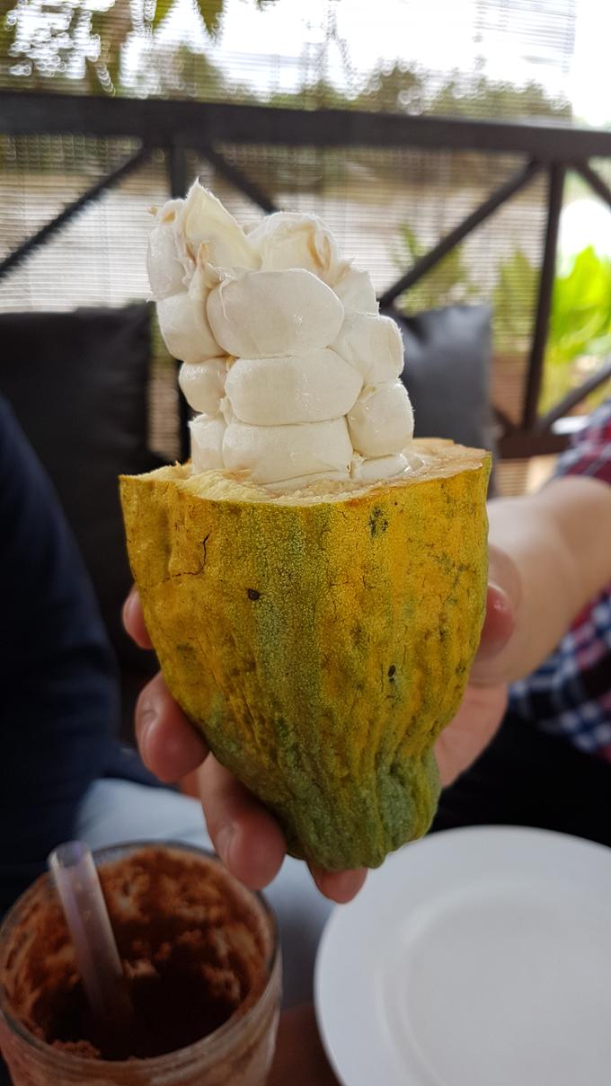 Oiya, kenapa cokelat? Kok kaya gak nyambung gitu ya sama resto Istana Nelayannya? hee. Ini yang kemarin saya tanya juga. Ternyata, pemilik Istana Nelayan juga punya pabrik cokelat dan kayaknya juga doyan banget cokelat ya. Makanya di seluruh lahan resto ini juga ditanam banyak banget pohon-pohon cokelat. Nantinya kita juga bisa makan loh buah cokelatnya. Saya aja kemarin dikasih. Gak nyangka ya buah cokelat ternyata kayak kecapi gitu, manis enak lah. Terus, bijinya itu deh yang diolah kayak kopi, jadi bubuk cokelat yang dijual dengan merk “Java”. Udah sering nemu kaaan kalau di supermarket? hehehee.