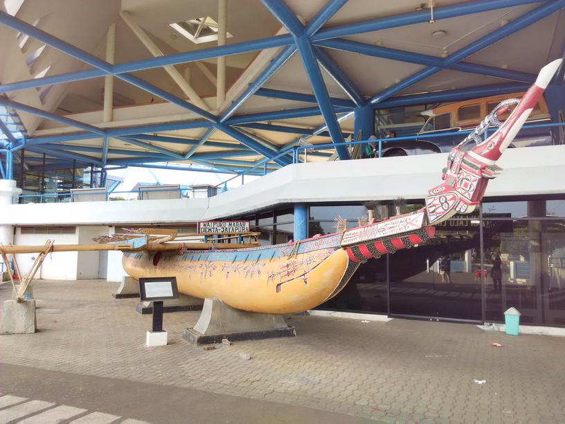 Setelah puas bermain di Istana Anak (Naia & Zalika sih yang puas, saya mah ngobrol sama Gema, haha), kami langsung menuju museum transportasi. Sayangnya hari sudah terlalu sore saat itu, sudah sekitar jam 16.30, jadi mobil keliling sepertinya sudah tidak ada. Akhirnya kami jalan deh ke museum transportasi. Alhamdulillah security TMII memberi tahu jalan pintas dengan melewati anjungan Indonesia Timur (lupa daerah mana persisnyaa, huhu) jadi jalannya tidak terlalu jauh *walaupun tetep aja capek, huh*.